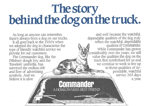 As long as most Long Island residents can remember, there was a dog on the top of our service trucks. The German Shepard dog was born in the 1950’s, and has remained the symbol of our commitment to servicing our customers in a friendly and watchful manner. The Commander dog has survived the endless ebb and flow of logos and icons as we continue to provide the highest quality of dependable service 365 days a year.